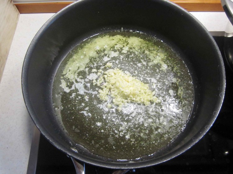 Zagrijte maslac i prepržite 5 čehna bijelog luka.