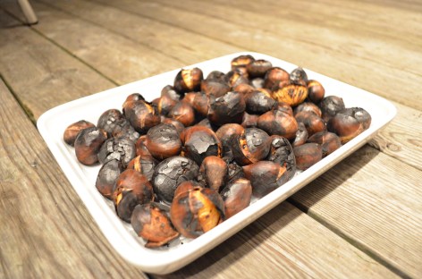 Kestenje zarežete po malo sa jedne strane i poredate u tepsiju (koristite staru tepsiju ili onu koju inače koristite kada pripremate hranu u prirodi). Pečete ga na direknoj vatri, često miješajući, dok ne postane pečeno. Kora kestenja će postati crna, lako će se guliti, a ako probate jedan, unitrašnjost će biti mekana i jestiva. Tada je kestenje gotovo. Zaista veliki ugođaj sa tako malo.