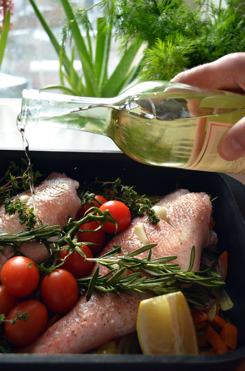 Da, riba zaista dobije potpuno drugi ukus kada se peče u rerni (u odnosu na kada se prži na tavi ili peče na planči). U rerni se mirisi u sokovi svih začina, vina i maslinovg ulja “uvuku” u meso ribe. Mmmmm …