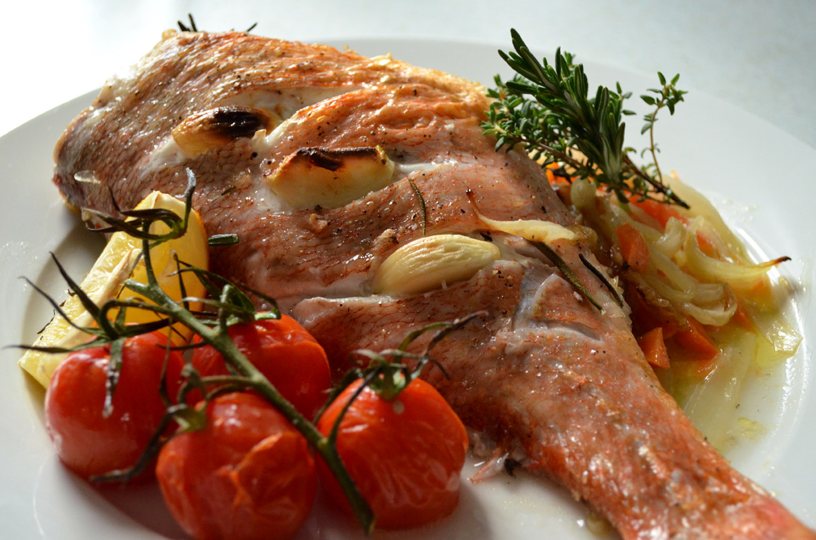 Cijela riba pečena u rerni, sa povrćem, sviježim začinima, bijelim vinom i maslinovim uljem je zaista čista koncentracija ukusa i mirisa u jednom jelu.