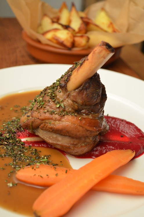 Jagnjeća podkoljenica sa kremom od cvekle