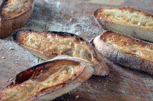 Izrežite hljeb na kriške i prepecite ga na grillu u rerni, ili na grill tavi, sa obadvije strane. Površina treba dobiti lijepo rumenu boju i hrskavost.