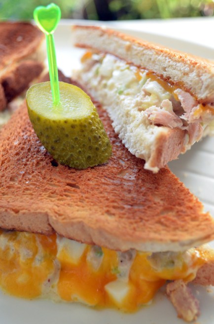 Tost prepecite sa obje strana a zatim stavite 2-3 kašike tuna smjese na jednu krišku. Poredajte cheddar sir i pokrijte drugom kriškom prepečenog tosta. Sendvič sada zapecite još dok se sir ne rastopi. Ovaj sendvič možete peći u tosteru, u rerni na grilu ili na gril tavi.