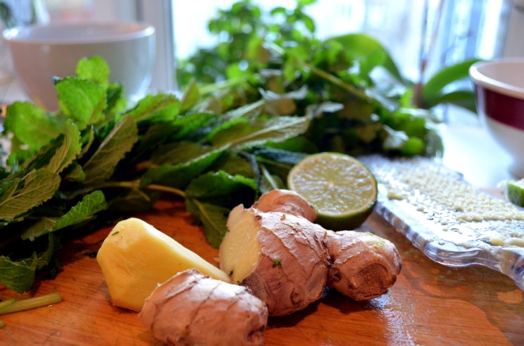 Indijski bhaji sa lukom, špinatom i dipom od nane i korijandera